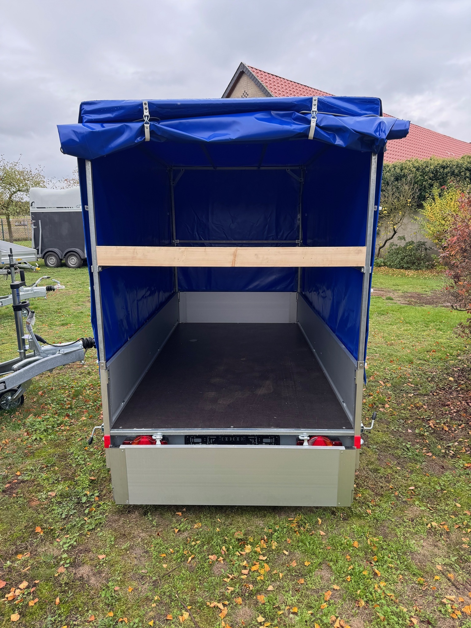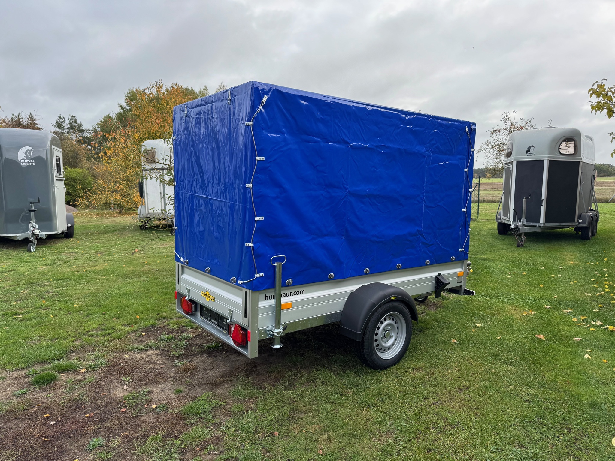 Humbaur Kastenanhänger HA 132513 KV - Alubordwände mit Klappe vorn und hinten + hochwertiger Planenaufbau Original Humbaur (kein "billig" Nachbau) sowie 2 Fallstützen.
